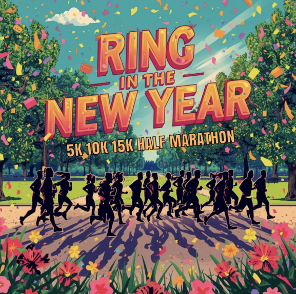 It's time to Ring in the New Year 5k, 10k, 15k, Half Marathon on Sunday, January 4th, 2026 at Whittier Narrows Recreation Area!